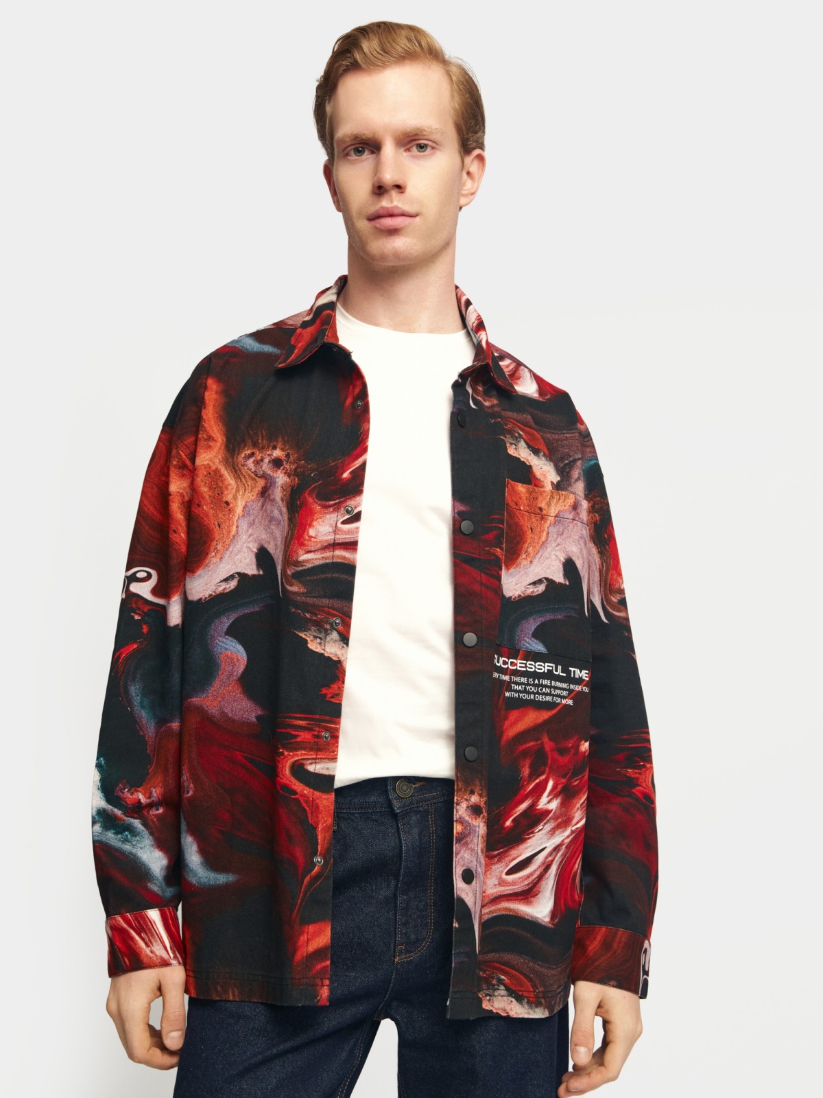 На фото: куртка-рубашка из хлопка с принтом, блейзер