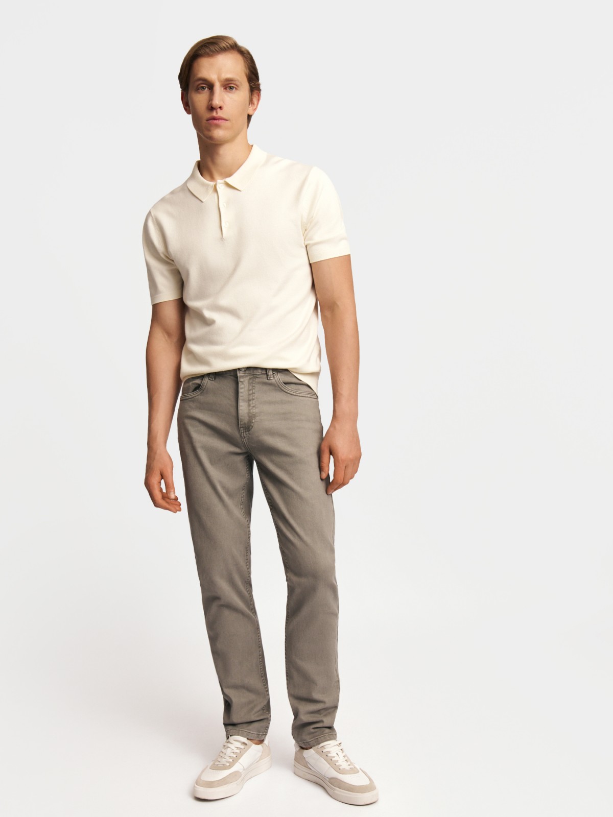 На фото: брюки прямого силуэта из хлопка, джинсы фасона Tapered из хлопка