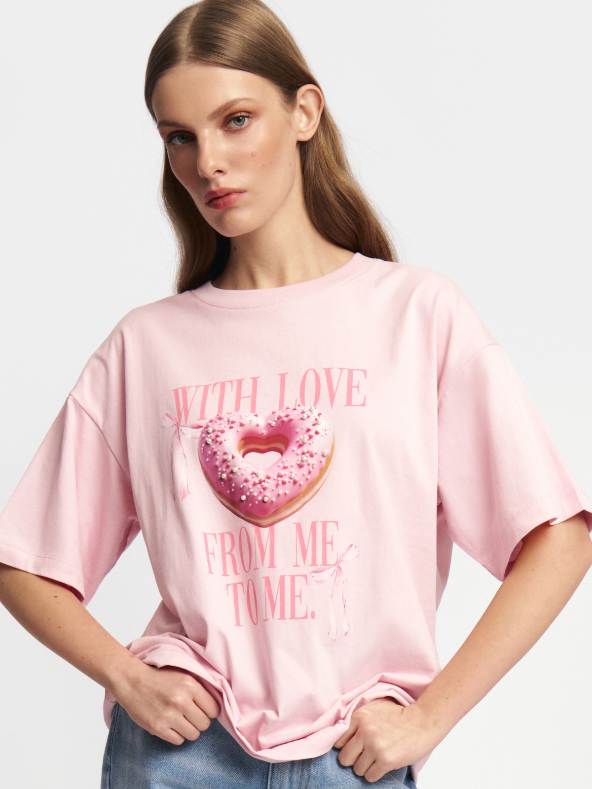 Завершить образ помогут хлопковые футболки с праздничными принтами и надписями, добавляя нотку креативности и настроения праздника.
