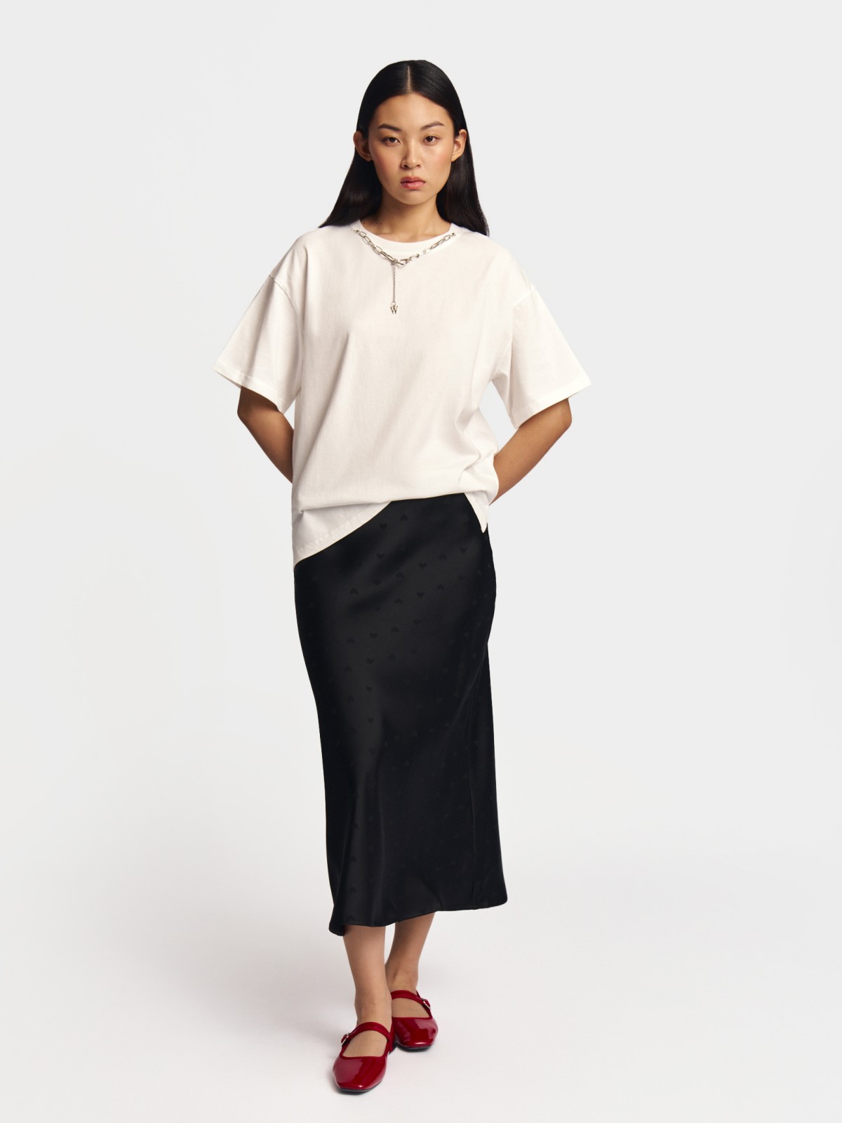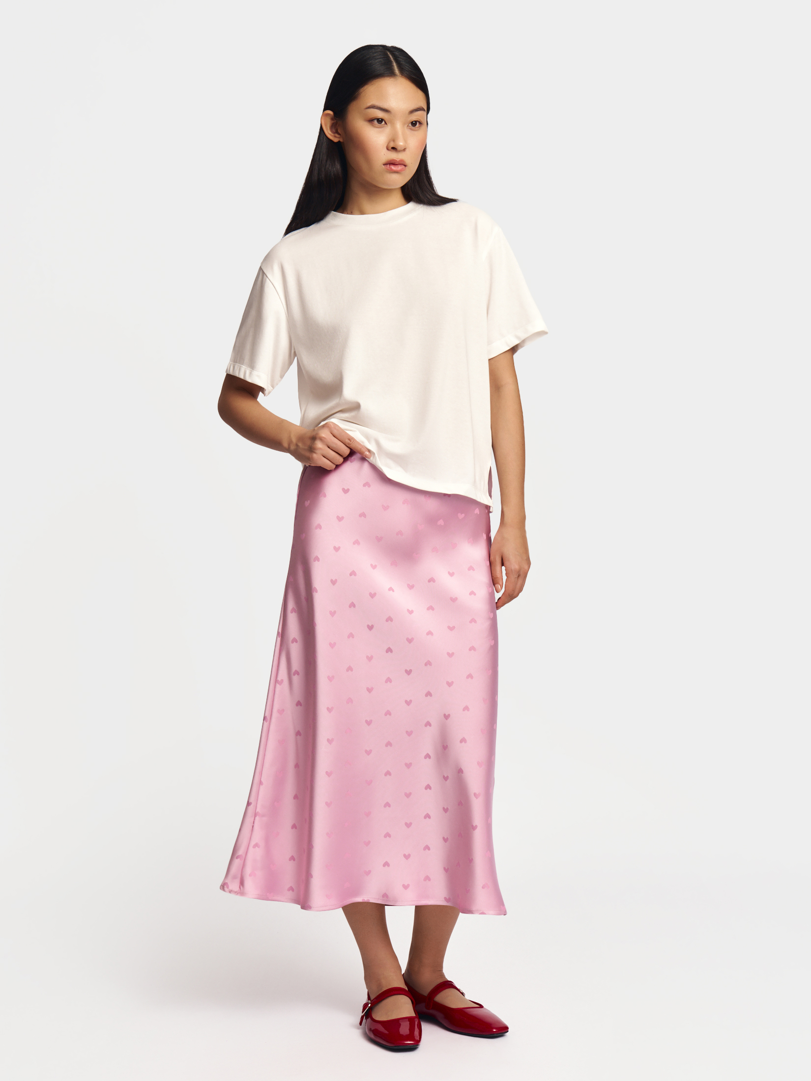 На фото: атласная юбка миди, атласная юбка миди на резинке