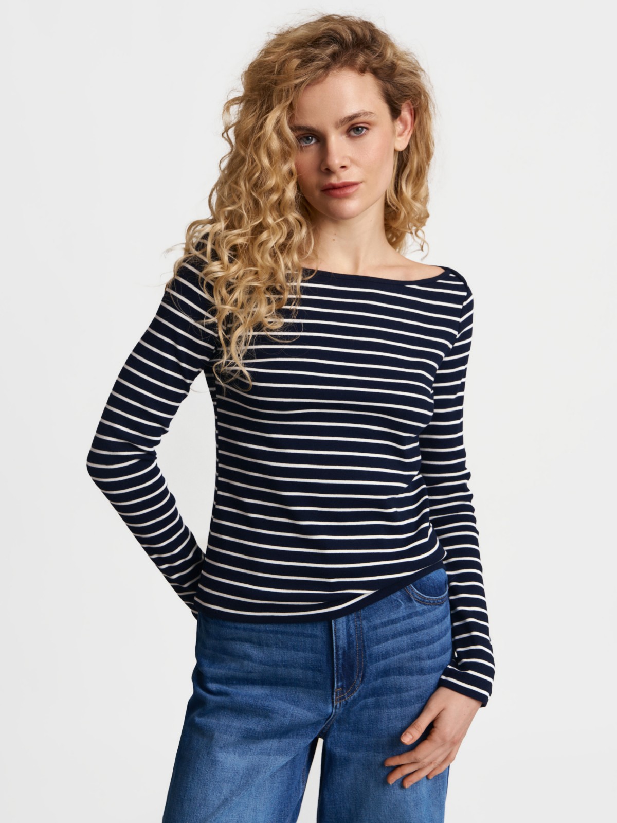 Лонгсливы женские в полоску синие