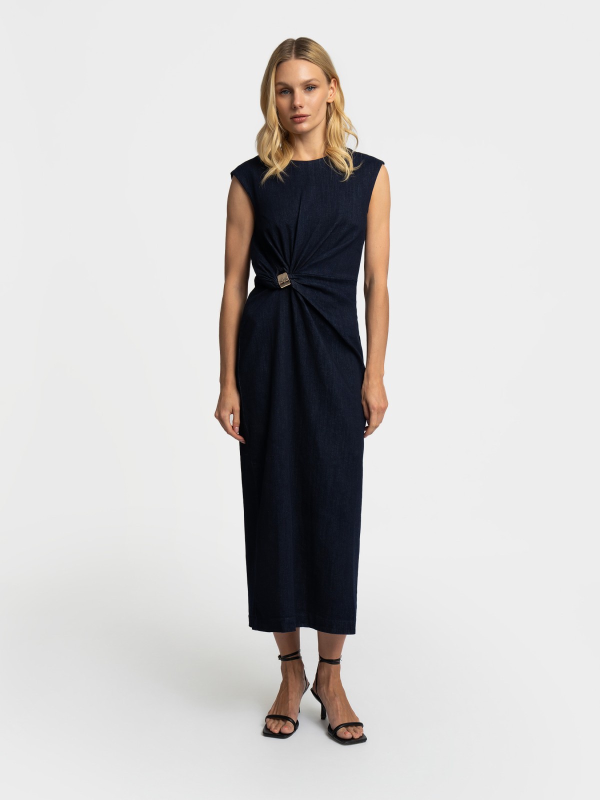 • Платье миди с драпировкой без рукавов