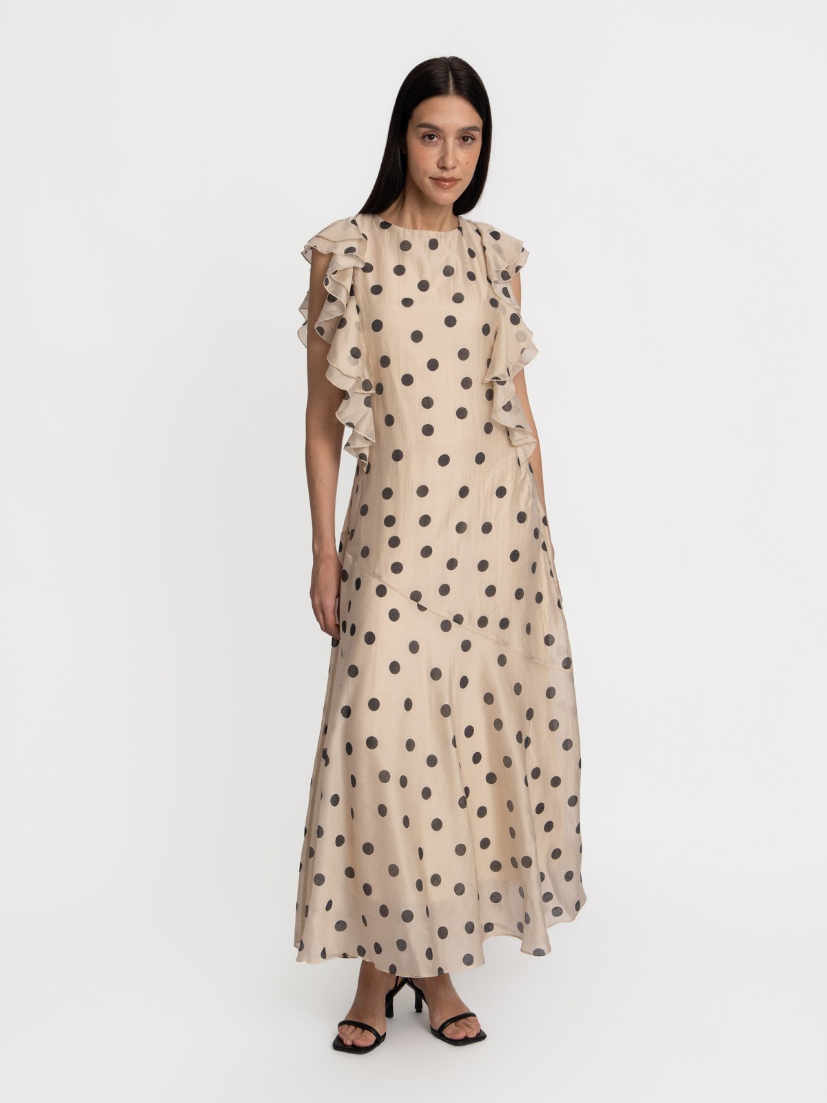 • Платье макси из шифона на резинке с воланами