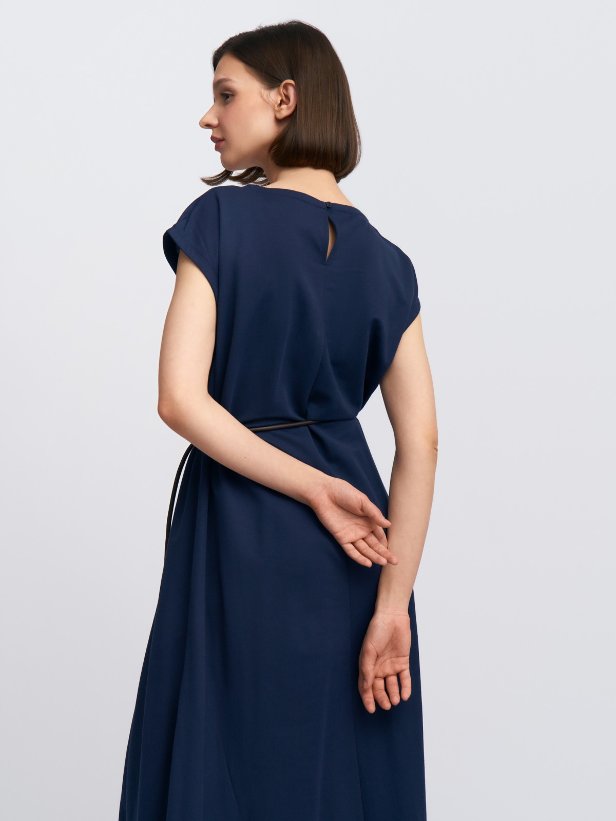 Платье миди без рукавов с поясом